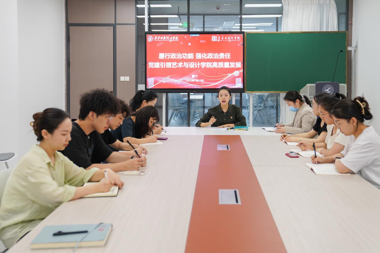 为深入开展学习贯彻习近平新时代中国特色社会主义思想主题教育,确保党的二十大精神在学院基层党建工作中推深做实、落地生根,7月13日,艺术与设计学院党委书记雷宇以《履行政治功能,强化政治责任,党建引领艺术与设计学院高质量发展》为题讲授主题教育专题党课。学院全体教工党员及部分新入职教师采取线上线下结合的方式聆听学习。