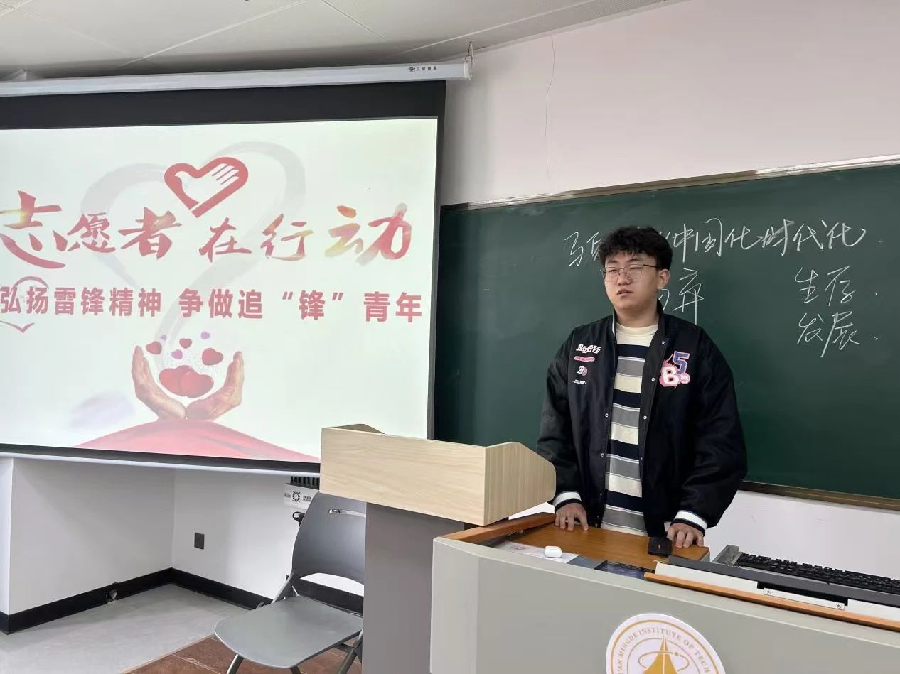 为弘扬新时代雷锋精神,激发青年学子奉献热情,ac米兰官方网站明德科技职业学院于近日组织青年志愿者分队观看纪录片《雷锋的故事》,通过影像重温榜样事迹,并开展专题讨论,推动雷锋精神融入校园文化建设。此次活动由学院青年志愿者服务分队队长王棋甲、吴贾瑶分别主持。