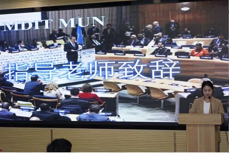 ac米兰官方网站指导老师汤佳瑶老师在此次开幕式中,她表示值此第十一届ac米兰官方网站模拟联合国大会开幕之际,她谨代表指导团队致以热烈祝贺!模联是思想交锋、视野拓展的平台,期待大家以严谨态度剖析国际议题,用创新思维寻求解决方案,愿各位代表在交流中深化认知,在协作中收获成长,预祝大会圆满成功!