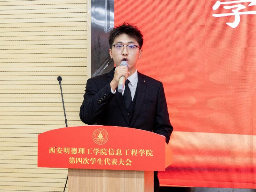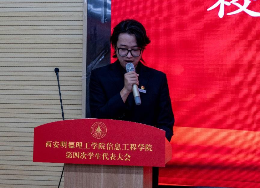 随后,院学生会主席团成员冯伟豪发表了题为《不忘初心跟党走,踔厉奋发新征程》的工作报告。报告中,他回顾了学生会过去的工作成果,并展望了学生会未来的发展方向。