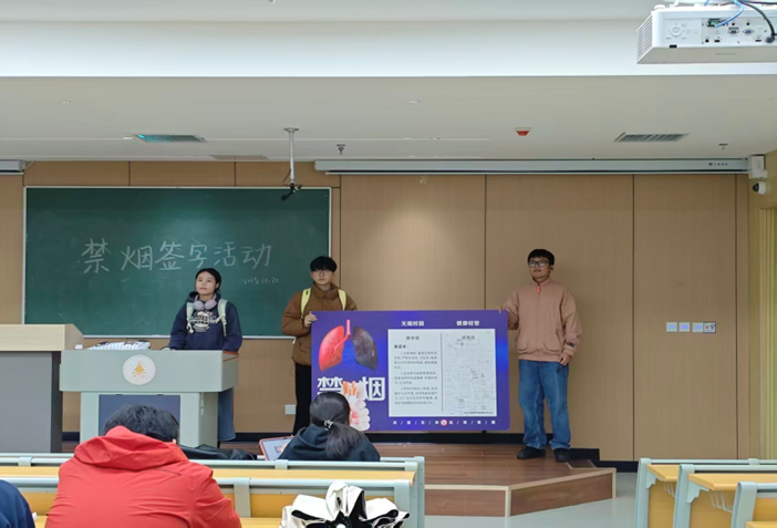 活动现场,学院学生骨干通过主题宣讲,从“健康受损、影响学习、不良形象、安全隐患”四方面剖析吸烟危害——青少年吸烟会阻碍身体发育、降低学习效率,更与校园文明格格不入,随意丢弃的烟头还易引发火灾隐患。同时,宣讲强调禁烟的多重意义:不仅能保护自身健康、营造文明校园氛围,更能让青年学生以实际行动树立文明风尚、引领社会新风。