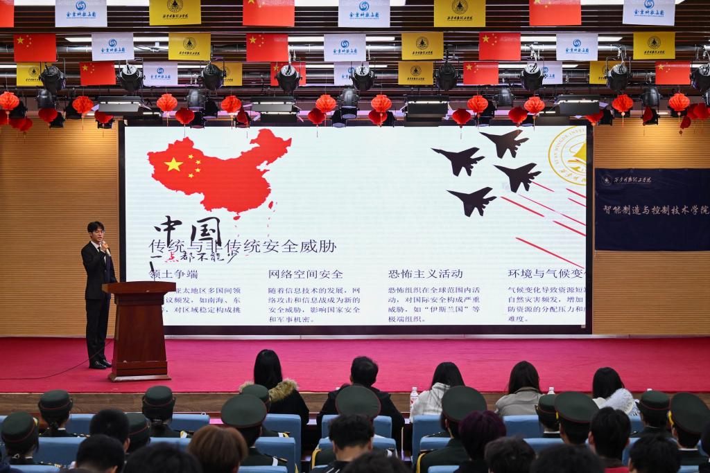 本次“青春为中国式现代化挺膺担当”第三届爱我国防演讲 ,决赛共有 6 名选手参赛 选手们聚焦传统安全与非传统安全威胁的时代命题,从领土主权、军事防御等传统安全底线,到网络安全、科技竞争、生态安全等非传统安全挑战,层层剖析国防建设的现实意义。他们结合新时代青年使命,畅谈大学生如何以专业所长筑牢国防根基——用知识破解科技安全难题用担当传承爱国拥军传统,生动诠释了“青春护国防”的深刻内涵。
