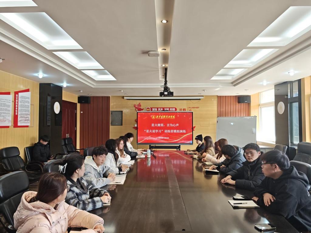 11月25日中午,明德科技职业学院“星火说学习”宣讲团在明理楼216会议室组织开展“星火燎原,言为心声‘星火说学习’”训练营自主模拟演练。宣讲团20名成员围绕学校评建核心任务,以自主策划、自我督查的形式完成实战训练,全面锤炼宣讲能力,为学校评建工作蓄力。