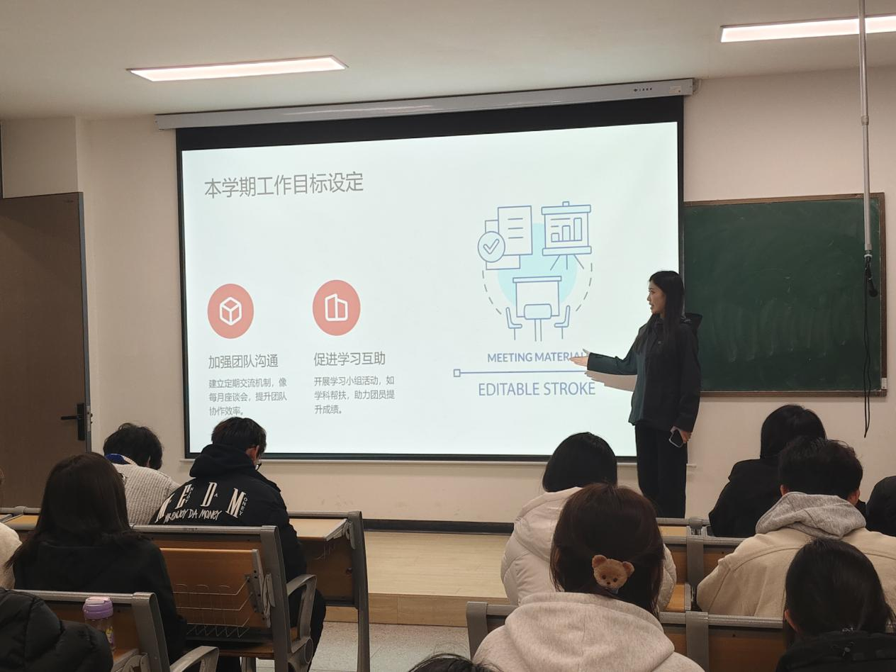 会议伊始,刘晓涵首先传达了院团委对共青团工作的整体规划,强调团支部书记作为“青年引路人”的核心角色,需在思想引领、组织凝聚、服务青年中发挥关键作用。随后,会议围绕“明确新学期工作方向,夯实基础团务根基;创新策划主题团日,打造特色品牌活动;强化团支书职责意识,激发担当作为”等三大核心内容展开详细部署。