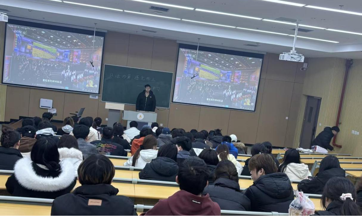 活动伊始,长安校区与莲湖校区分别在团学干部张郅卓、陆宇的主持下,同步开启了宪法知识问答环节。问答紧扣宪法基本原则与公民权利义务等核心内容展开,同学们踊跃举手、对答如流,现场气氛热烈。对于回答中存在的疑问,两位负责人结合生活实例,为同学们进行了细致剖析与解答,有效巩固了学习成效。随后,两校区共同组织了宪法主题宣传视频的观看。视频案例生动贴切,语言通俗易懂,使宪法的核心要义与现实意义深入人心。
