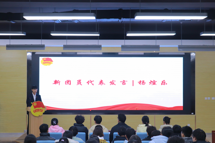 新团员代表杨煊乐发言,表示将以入团为人生的新起点,继承和弘扬五四精神,坚定理想信念,在团组织的引领下锻炼能力、勇挑重担,努力成为“有理想、敢担当、能吃苦、肯奋斗”的新时代好青年,用实际行动践行“请党放心,强国有我”的誓言。