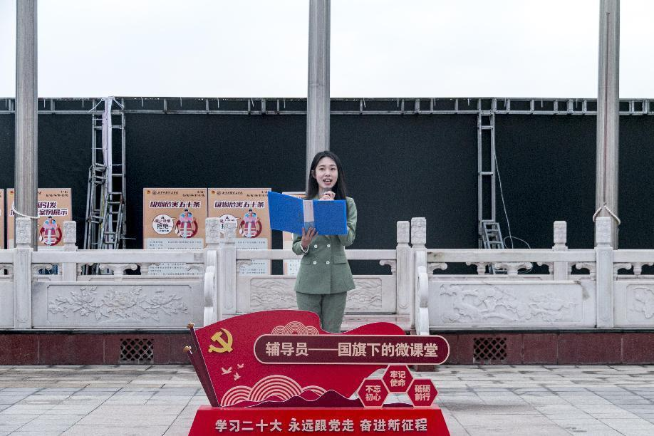 艺术与设计学院学生代表孙悦作为优秀共青团员,终南之星获得者,她以“明德解行立志,铸就无悔青春”作为国旗下的演讲。她号召全体青年学子,要练就斗争路上的“真功夫”,做本领过硬的“筑梦人”;树立“青春之我”的奋斗之姿,做追逐梦想的“追梦人”;扛起“强国有我”的青春之责,做百年复兴的“圆梦人”,用耳朵倾听人民呼声,用眼睛发现中国精神,用脚步丈量祖国大地用内心感应时代脉搏。
