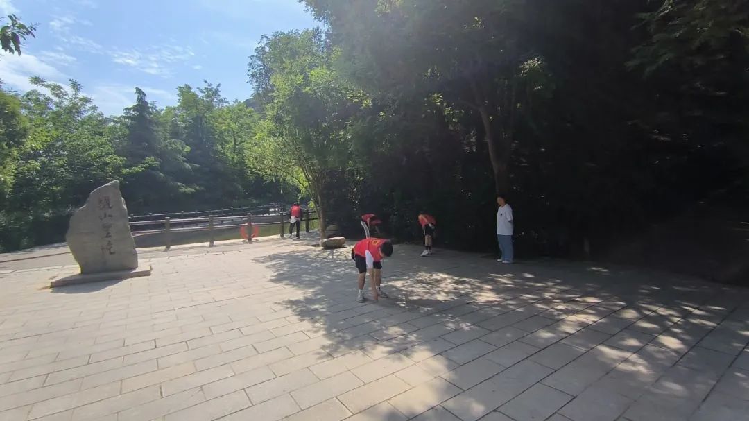 到达骊山之后,团委成员们穿上志愿者服饰,在骊山的上善湖进行环境美化活动。