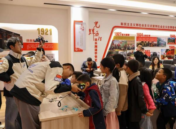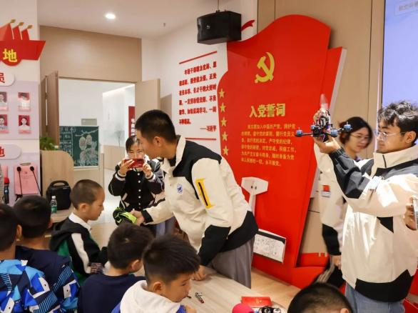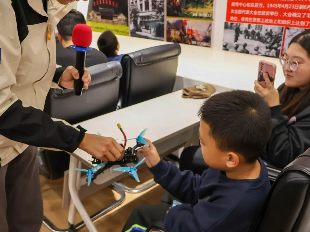 当孩子们和家长们陆续抵达,空气中弥漫着浓厚的好奇与期待。活动尚未正式开场,孩子们已迫不及待地围聚桌旁,一双双明亮的眼睛闪烁着求知的光芒。航模队员们则化身为知识的园丁,耐心地解答每一个疑问,仿佛在孩子的心田轻轻播下科学的种子。