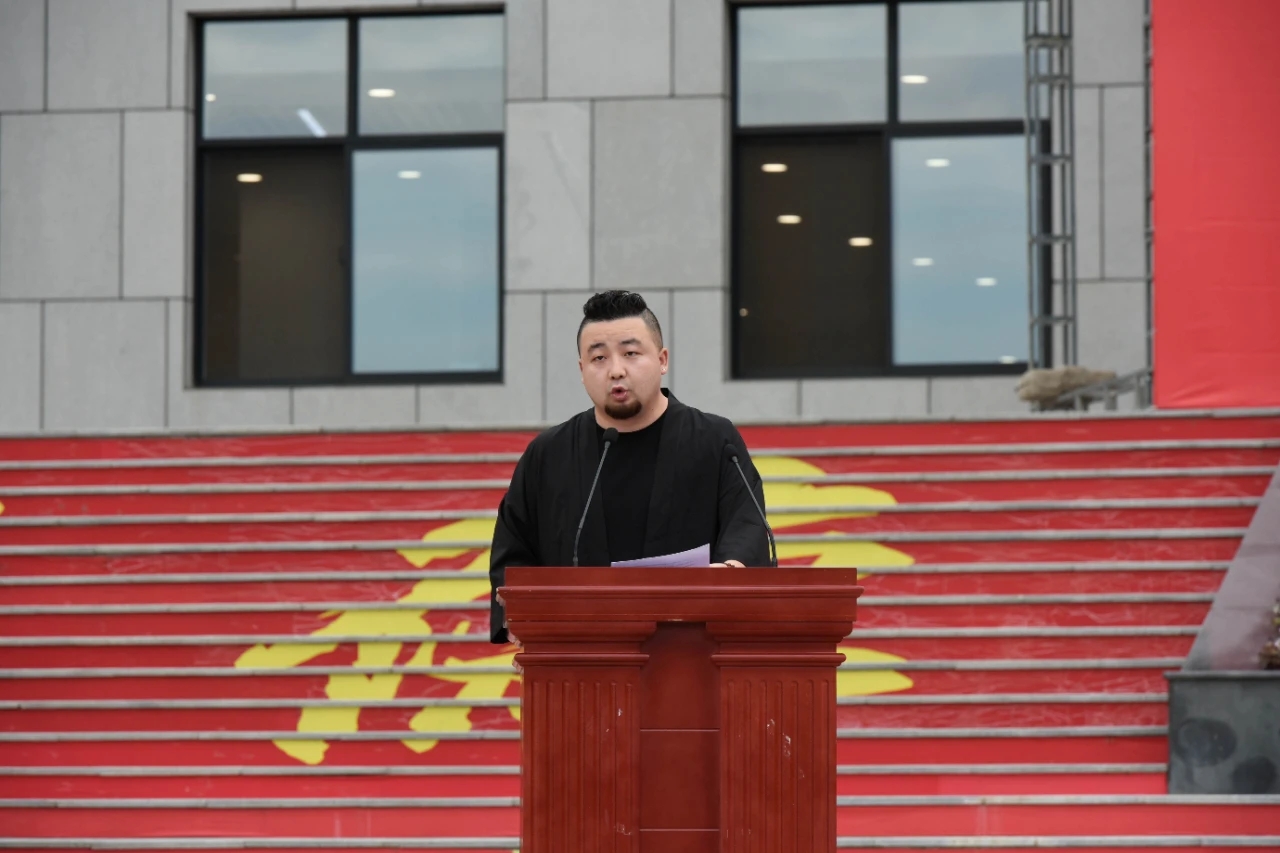 教师代表语言文化传播学院副院长刘勇发言,她期望同学们能将明德 亲民 至善牢记于心。以无所畏惧之心、以无所得失之心、以宽容之心、以谦恭之心,以学习成长之心坦然面对未来。