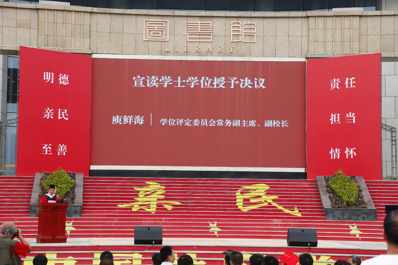 学位评定委员会常务副主席、副校长庾鲜海宣读《关于2021年普通本科毕业生学士学位授予的决议》。