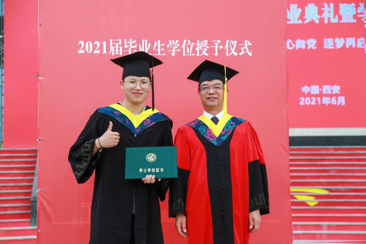 校友代表新浪陕西副总经理李朋朋发言,他寄语毕业生最简单的、最纯粹的往往才是最深刻的,也是最持久永恒的。谨记母校教诲,不忘初心,奔赴未来。