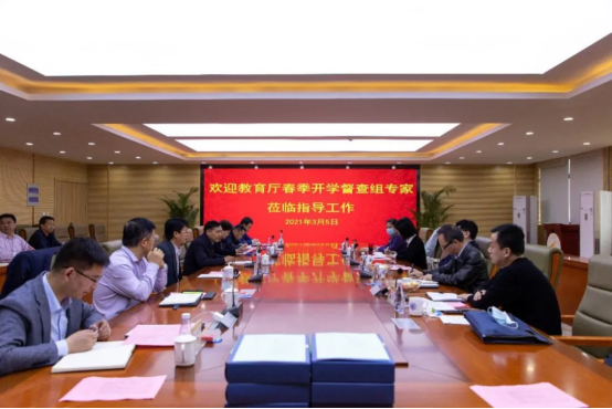 在随后举行的座谈会中,校长杨健君向督查组详细介绍了学校春季学期开学准备、疫情防控和开学后教育教学管理等相关工作安排,表示学校积极落实省教育厅关于春季学期开学疫情防控以及校园安全等各项工作部署,进一步完善、细化疫情防控工作预案,将各项工作落细落实,确保师生开学复课后的健康和安全。为学校高质量发展提供坚实保障。