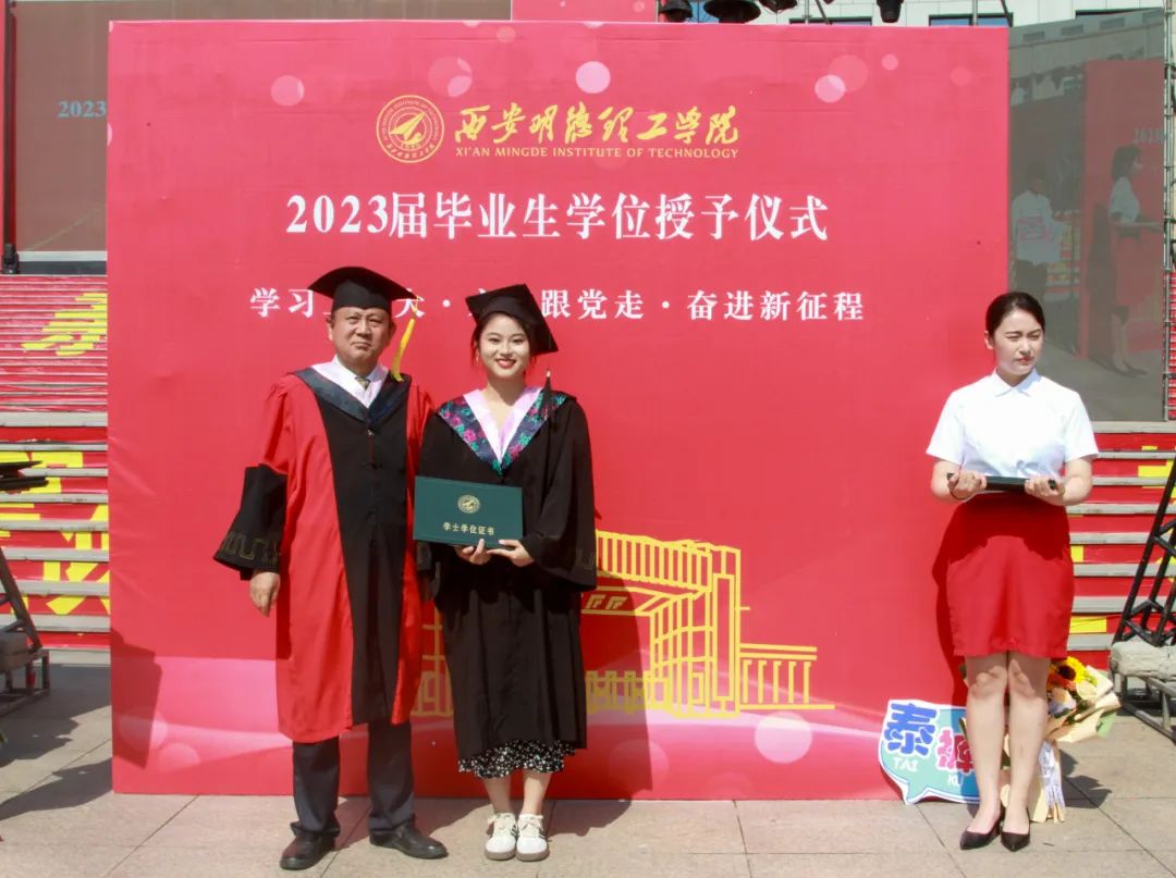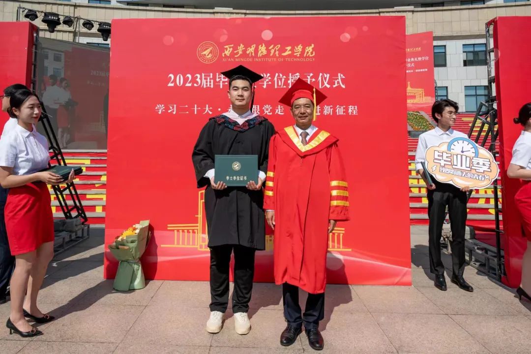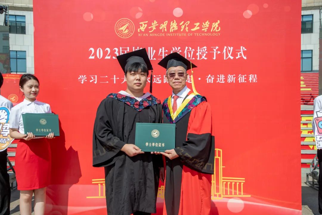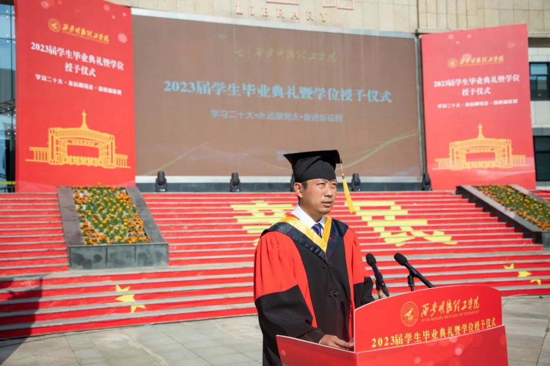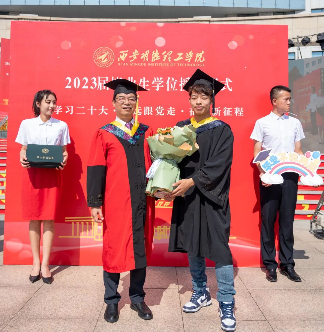 刘星副校长宣读《关于表彰2023届陕西高校优秀毕业生和优秀学生干部的通报》《关于表彰2023届优秀毕业生的决定》。袁汉源董事长为2023届优秀学生颁发荣誉证书。