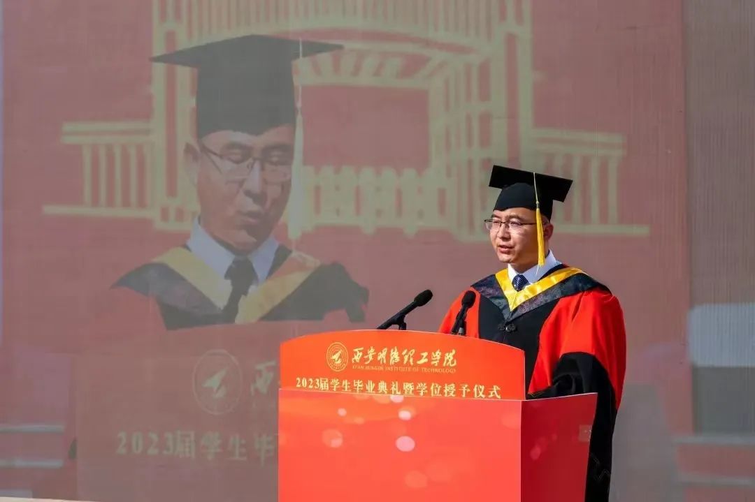 校友代表,ac米兰2015级校友,西北工业大学博士生陈俊宇分享了个人成长经历,勉励同学们将大学的美好回忆永存心间,将母校的爱和温暖永存心间,用拼搏和奋斗开启新征程,为母校增添光彩。