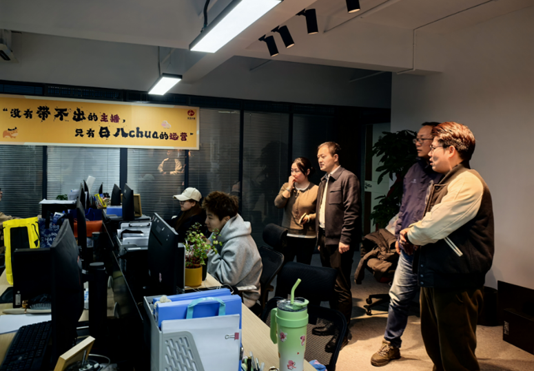 在张旭东、袁喆的陪同下,学校一行人员参观了企业的办公区域、直播间和设备间等工作场所,详细了解了企业的组织架构、业务范围、运营模式和文化,西安金诚和盈信息咨询有限公司先进的技术设备、专业的人才队伍和创新的管理理念给大家留下了深刻印象。