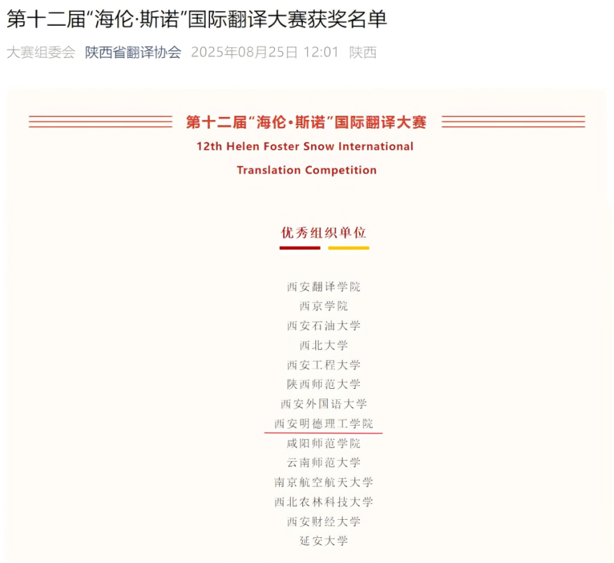 此次赛事由中国翻译协会提供支持,陕西省翻译协会联合北京大学中国埃德加・斯诺研究中心、美国南犹他大学及美国海伦・福斯特・斯诺基金会共同主办,旨在提升参赛者的翻译实践能力与跨文化沟通素养,发掘优秀翻译人才,推动中外文化交流与国际合作。