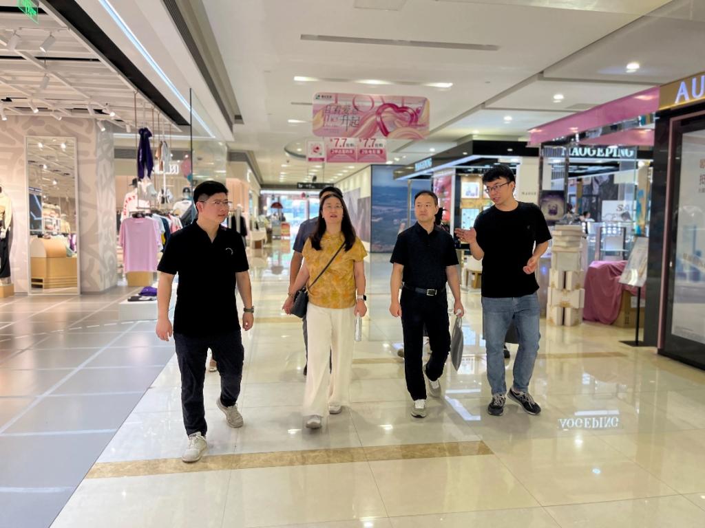 在浙北大厦集团,人力资源部经理金佳楠、浙北大学朱东热情接待了学院一行,何文举、刘敏分别介绍了学校和学院基本情况,并说明本次调研目的。朱东介绍了浙北大厦集团的历史沿革、企业定位、产品特色及管培生项目,表示在集团发展过程中,对具有专业素质的人才需求逐年增加,希望学院毕业生能加入,助力浙北大厦集团高质量发展。校企双方期望结合专业特点,在资源共享、人才培养上能开展交流合作,共同探索校企合作新模式。在金佳楠、朱东陪同下,学院一行先后参观了位于湖州市区和南浔的浙北超市、浙北大厦购物中心、浙北大学文明成果展厅等业态空间,对企业发展现状和规模有了深入了解。