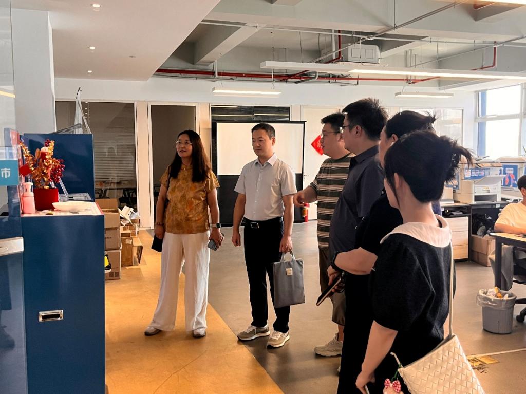 在校企合作单位杭州司腾网络科技有限公司,企业总经理茹宝、校企合作部负责人林恩热情接待了学院一行,陪同调研团参观了企业办公环境和跨境电商经销产品。座谈中,茹宝介绍了企业在跨境电商方面成功的校企合作案例,就“十五五”期间跨境电子商务的发展趋势做了分析;何文举、刘敏分别对企业为学院国际经济与贸易专业学生小学期提供的实习实践表示感谢,期待校企深度合作,为学院“十五五”期间传统专业的转型升级提供参考。