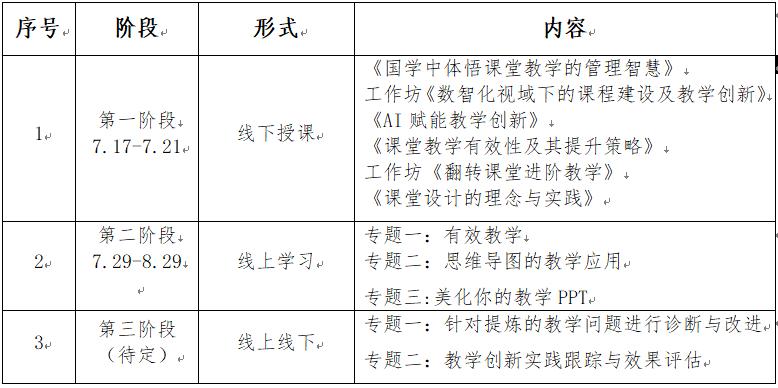 1.本次培训为线下培训,参培人员在不影响日常教学的情况下结合工作实际报名参加,同时参培人员需完成三阶段的培训;教师发展中心将统一购票出行;