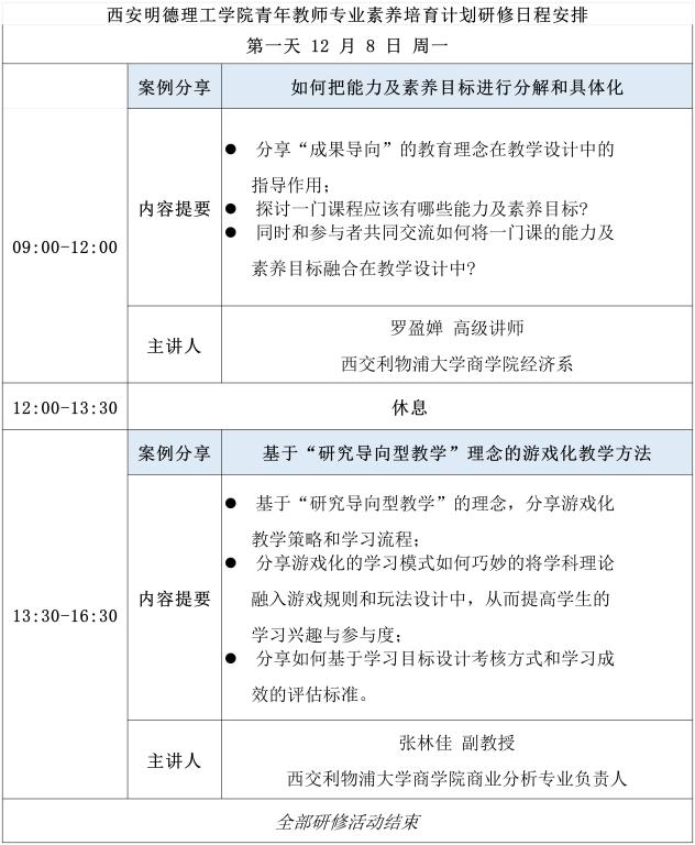 请各二级学院依据下表所分配的人数上限组织报名工作,参培名单请于12月5日(本周五)12:00前统一反馈至教师发展中心金珊珊处。