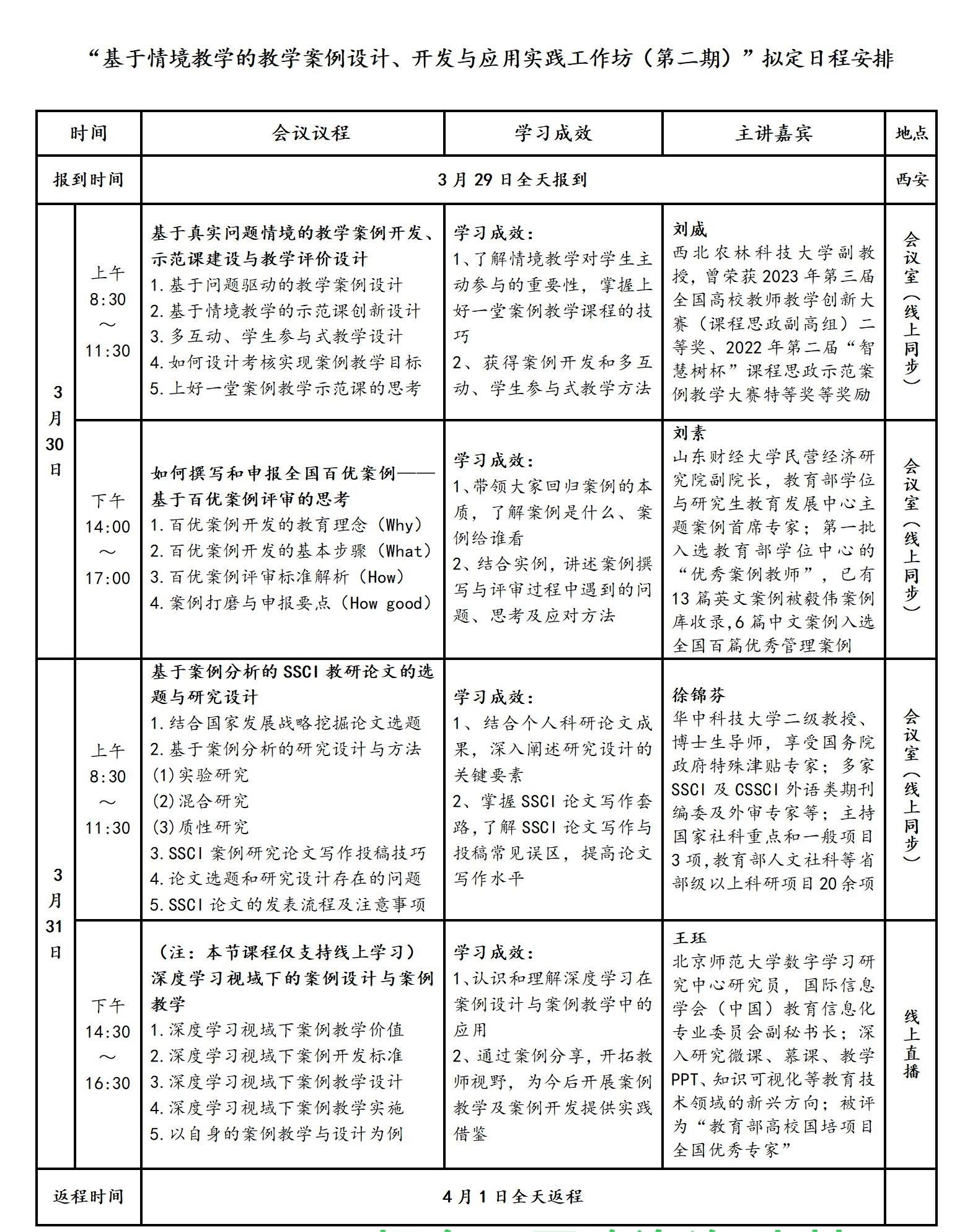 “基于情境教学的教学案例设计、开发与应用实践工作坊(第二期)”培训安排