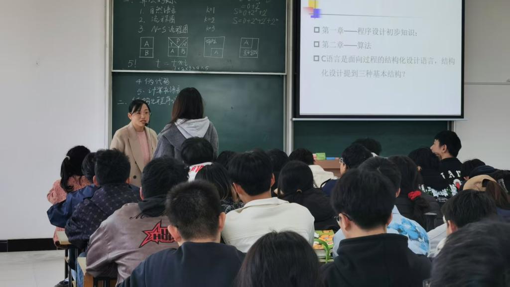 本次公开课聚焦课程核心章节“2.4算法的特性”与“2.5结构化程序设计方法”。唐贤芳老师以问题为导向,通过生动案例解析算法的五大特性,深入浅出地阐释结构化程序设计方法的内涵与实践意义。课堂中,唐老师注重师生互动,通过多次提问引导学生主动思考,并邀请学生上台尝试编写解题代码,充分调动学生参与热情。学生们积极回应,在实践环节中展现出活跃的思维和扎实的编程基础,课堂气氛热烈,充分体现了“以学生为中心”的教学理念。