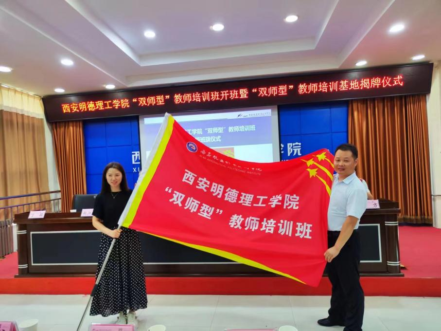 在授班旗仪式上,西安航空职业技术学院继续教育学院培训部主任张江波将象征着荣誉与责任的班旗授予ac米兰官方网站教师发展中心副主任郝丽静手中。这不仅是对培训班学员的鼓励与期待,更是对两校合作成果的美好祝愿。
