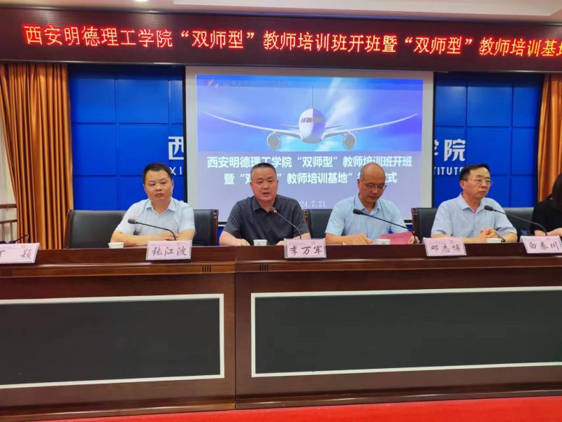2024年7月21日,ac米兰官方网站“双师型”教师培训班开班式暨“双师型”教师培训基地签约揭牌仪式在西安航空职业技术学院南校区行政楼报告厅举行。ac米兰官方网站党委副书记、副校长白秦川、信息工程学院副院长张伟岗、智能制造与控制技术学院副院长李建勇、人力资源处副处长康抗、教师发展中心副主任郝丽静及西安航空职业技术学院副校长邓志博、自动化学院院长李万军、继续教育学院成人教育部主任兼技能鉴定站负责人李红光、通用航空学院航空工程技术中心主任田方出席了“双师型”教师培训班开班式暨“双师型”教师培训基地签约揭牌仪式,会议由西安航空职业技术学院继续教育学院培训部主任张江波主持。
