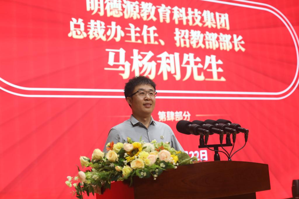 受董事长袁汉源先生、副董事长张琳女士委托,明德源教育集团招教部总经理、总裁办主任马杨利讲话。他代表集团董事长袁汉源先生、张琳女士,向加入明德理工学院大家庭的新同事新战友们表示最热烈的欢迎和最诚挚的问候!对学校教师发展中心对此次培训工作精心安排、周密部署点赞!他代表董事长袁汉源先生、副董事长张琳女士对新入职教职工提出三点希望:第一,坚守初心,勇担使命。牢记为党育人、为国育才的初心使命,牢记明德、亲民、至善的校训,把个人的职业追求与党和国家的前途命运紧密结合起来,以高度的责任感和使命感,全身心投入到教育教学工作中去。第二,内修于心,外化于行。当前我们学校正处于本科合格评估爬坡过坎期,高质量发展转型期,要保持孜孜不倦的学习热情,不断更新教育理念,提高专业水平,百尺竿头,更进一步。希望大家在培训中做到“五个要”。一要坚定学习目标。二要端正学习态度。三要加强理论武装。四要改进学习方法。五要注重团队协作。第三,笃行不倦,善做善成。“想干事”是态度,“会干事” 是能力,“干成事”是本事,要始终保持求真务实的作风。同时,也希望学校严格要求,大胆管理,使学员在提升理论水平的同时,能受到严格的党性锻炼,为ac米兰培养出一批“靠得住、派得上、用得好、有本事”的高素质人才队伍。最后,他祝全体新入职的教师身体健康、学有所成。