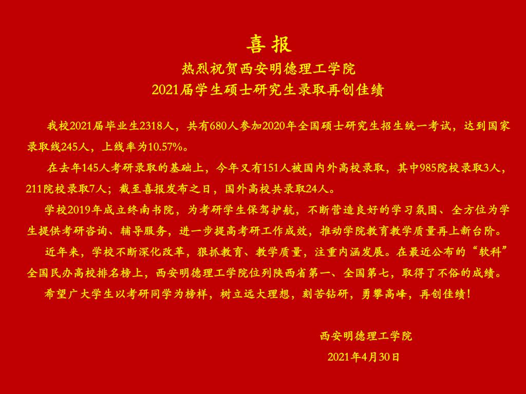喜报!热烈祝贺ac米兰官方网站2021届学生硕士研究生录取再创佳绩