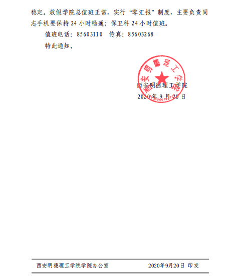 关于2020年国庆节、中秋节放假安排的通知