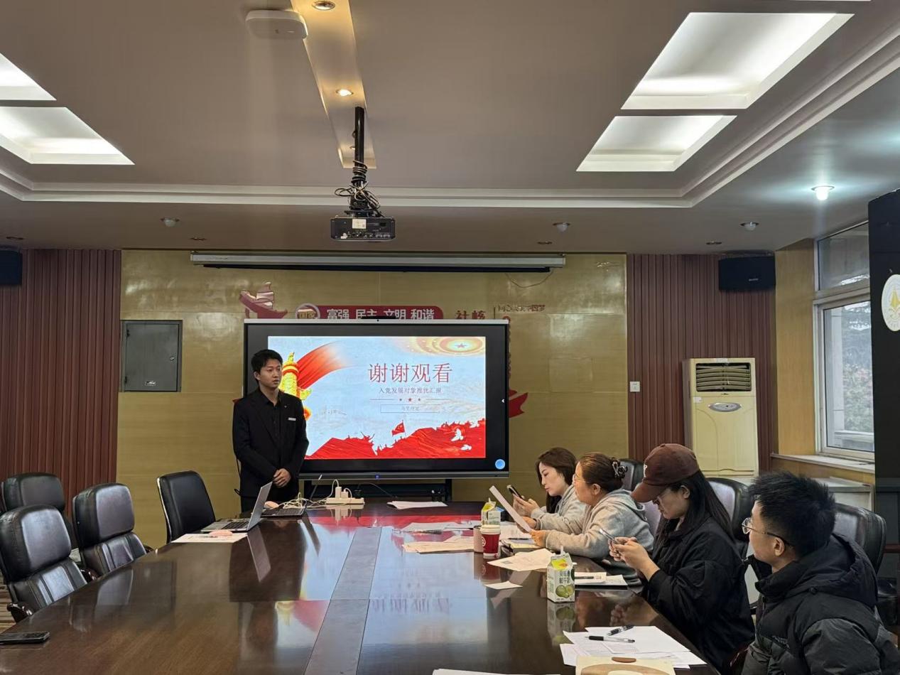 汇报环节中,发展对象紧扣个人成长轨迹、理论学习收获及社会实践感悟展开陈述,重点阐述对党的认识、入党动机及未来规划。评委团围绕理想信念、责任担当等维度提问,既肯定发展对象的进步与成长,也针对理论深度、实践结合度等提出改进方向。郭庆老师勉励大家“以行动践行初心,用实干担当使命”,李艺萌老师强调“要始终对标党员标准,在服务中锤炼党性”,现场互动热烈,思想交锋深刻。