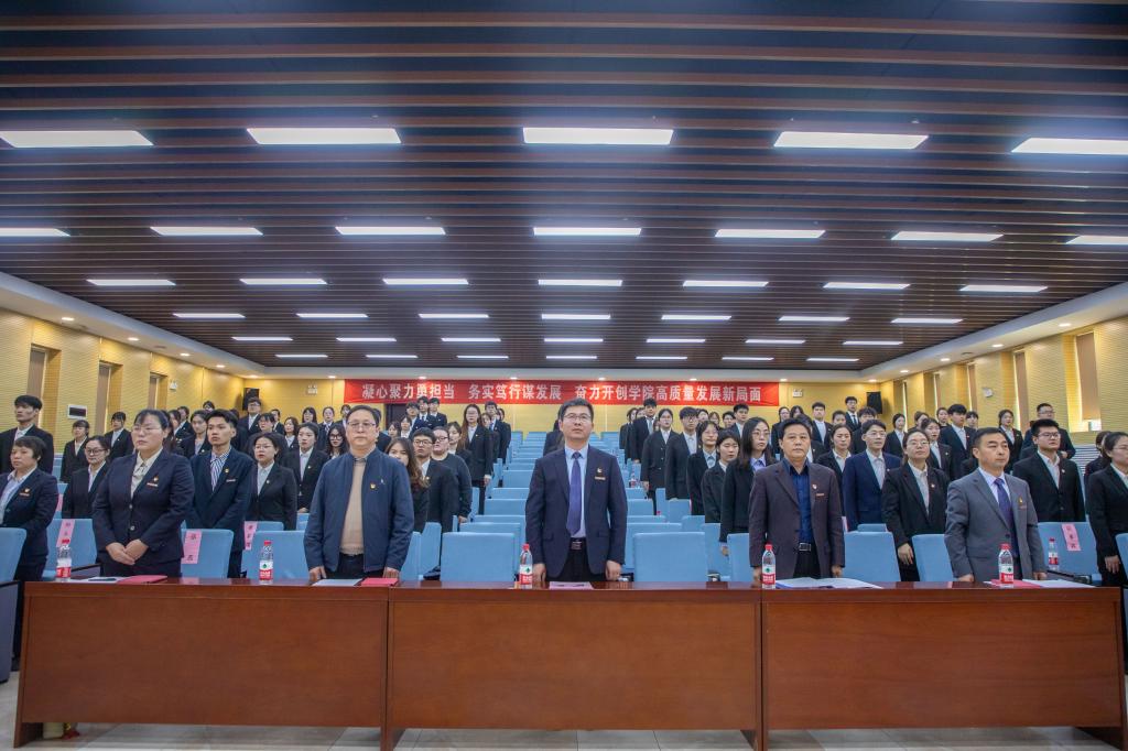 大会号召,全院上下要始终高举中国特色社会主义伟大旗帜,以习近平新时代中国特色社会主义思想为指导,全面贯彻党的教育方针,牢记为党育人、为国育才的初心使命,坚持立德树人根本任务,紧紧围绕学院“十四五”发展规划,准确把握高等职业教育教学规律,凝心聚力,务实创新,全面落实学院发展规划目标,开创学院高质量发展新局面,为把高等职业技术学院建成特色鲜明、管理水平较高、教育教学质量居于同类院校前列,具有一定规模的二级学院而努力奋斗!