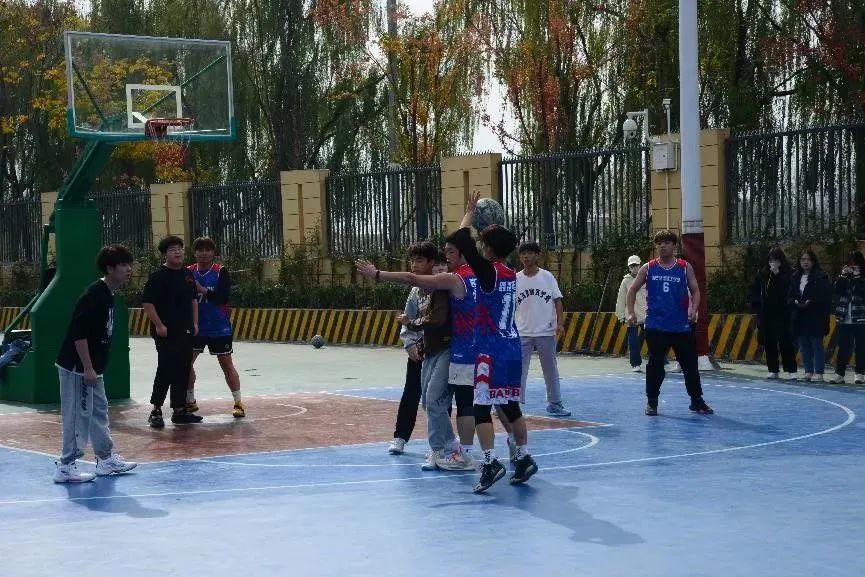 哨声响,赛事始。双方队员随即展开了激烈的比拼,突破、上篮、快攻、抢断,平时的训练场就是此时的赛场。是时候展现真正的技术了!比赛中队员个个雄姿英发伴随着矫健的步伐和坚定的目光抢球!防守!进攻!动作连贯如行云流水,一气呵成!