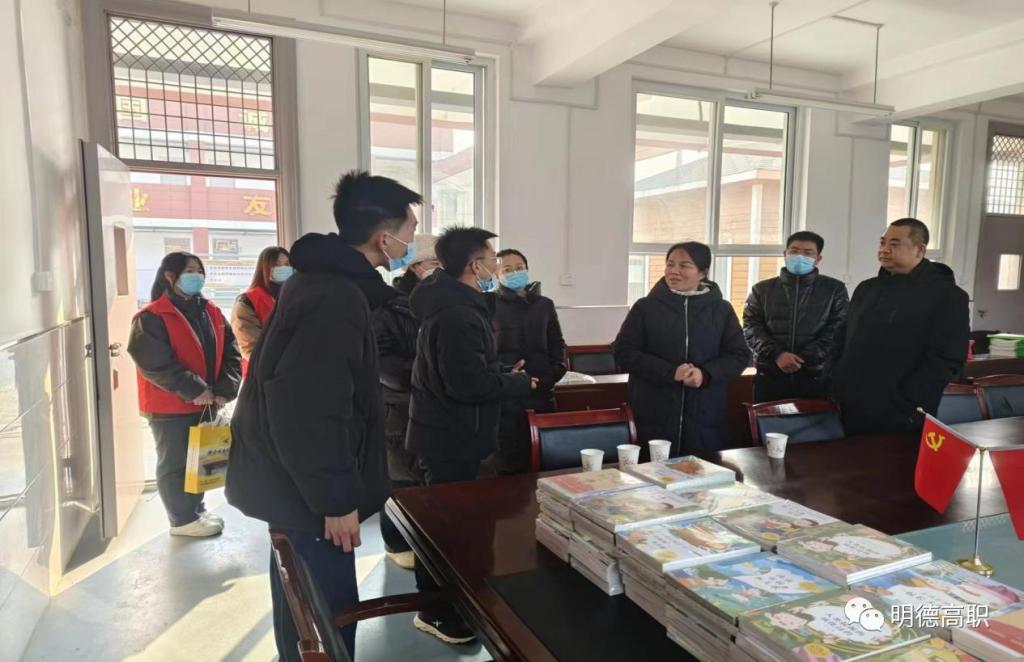 12月27日下午,校团委副书记刘雄,高等职业技术学院党总支副书记王飞、团委书记郭庆、团委副书记窦旸、辅导员代表刘洁、学校宣传大使王东兴、青年志愿者等30余人一起前往西安市长安区滦镇西留堡村小学捐赠爱心书籍。