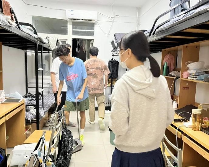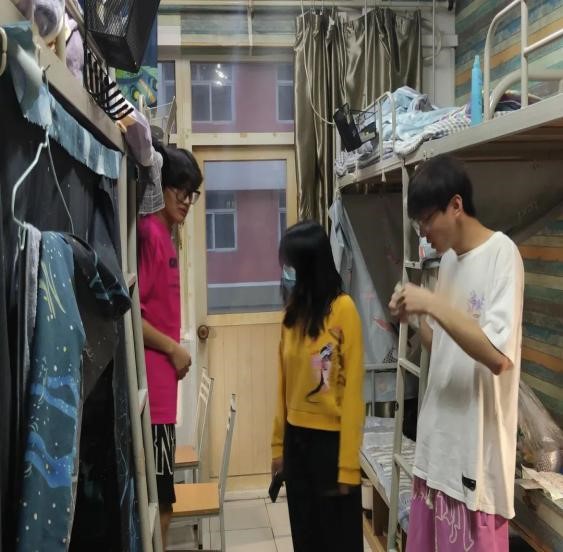 此次走访学生寝室,进行了寝室内务督查,提醒同学们要共同创建整洁文明的学习生活环境,不要在宿舍使用大功率电器,禁止私拉电线。疫情期间叮嘱同学们做好个人防护,积极配合学校防疫工作。进入寝室后,辅导员老师仔细检查了寝室设施是否完好,叮嘱同学们定好闹钟,按时参加线上课程,天气转凉多添衣物。