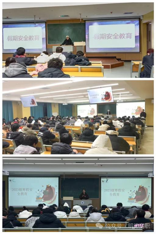 辅导员首先强调诚信考试的重要性,再次告知学生的具体考试时间,提醒学生带好学生证、一卡通、身份证等相关证件,带好考试所需的学习用具,牢记考试时间以及考试纪律,认真备考,诚信考试。之后辅导员老师根据学校假期安排给学生继续召开“寒假安全教育”主题班会。老师们通过讲解寒假回家相关注意事项,运用生动的案例提醒学生增强安全意识,同时告知学生按照要求在明德理工学院APP上填写放假离校信息,便于老师们跟踪学生们离校返家情况。此外,各个辅导员老师根据自身要求,以群接龙、小程序登记、问卷调查、表格填写等方式掌握学生寒假离校信息,确保所有学生安全到家。