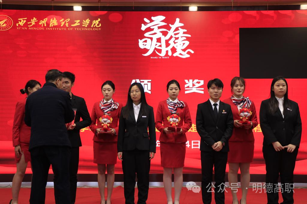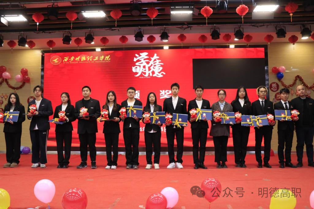 高等职业技术学院副院长于莉宣读了表彰决定,参会领导为获奖学生代表颁奖。