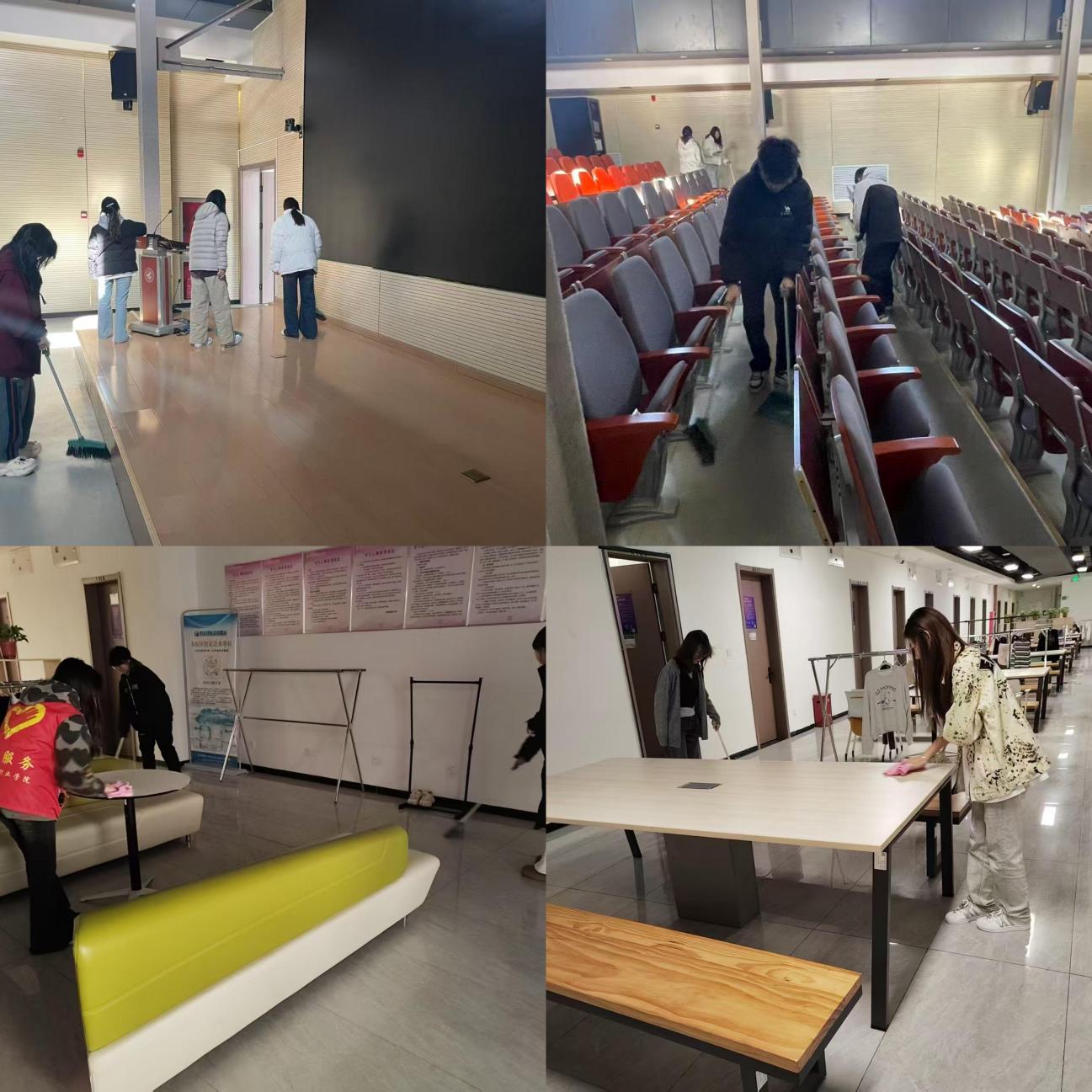 与此同时,莲湖校区的校园清洁行动也扎实推进,实现了各班同学的全域参与和分组协作。行动中,志愿者们对公共区域进行了彻底的精细化清理,不放过任何卫生死角;在办公区与报告厅,他们有序整理物品、擦拭设施、清扫地面,确保环境整洁如新;此外,志愿者们还主动走进宿舍,协助分类回收废品与旧书,并积极宣传垃圾分类知识,引导同学们养成环保节约的良好习惯。此次行动卓有成效,不仅整体提升了校园环境质量,更有力地增强了师生的环保意识。