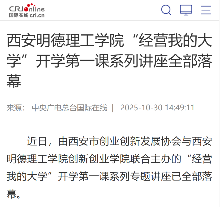 西安市创业创新发展协会全程深度参与,为高校人才培养注入社会动能。通过围绕职业规划、创新思维、创业启蒙等主题有效拓宽学生视野格局,充分展现了其在助力高校培养视野开阔、能力突出、生机勃勃的新时代大学生方面的专业能力与责任担当。(图文/张娟)