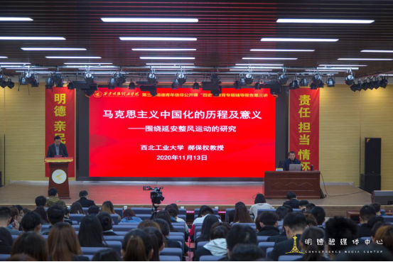 报告中,郝保权教授以“延安时期马克思主义中国化的历程及意义”为主题,围绕延安整风运动始末,运用大量党史资料和生动事例,从马克思主义中国化提出的历史背景、历史过程,延安整风运动以及马克思主义中国化的深远影响进行了深入分析。