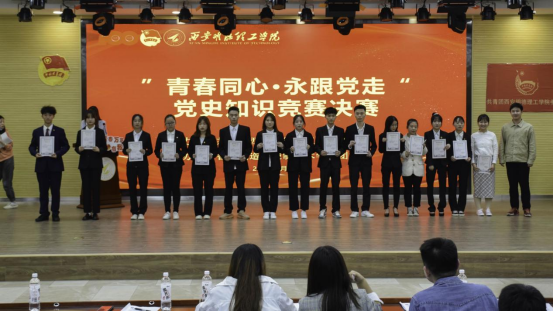 决赛阶段分为选择题、判断题、抢答题、风险选答题四个环节,竞赛内容涵盖中国共产党成立100年来重大事件、优秀人物、革命战争时期重要战役、新中国成立以来伟大成就等多项内容,以多元、丰富、立体的形式呈现出党百年发展的伟大历程,决赛环节不仅考验选手的党史知识储备量,更是考验选手现场发挥以及语言表达能力。经过激烈角逐,智能制造与控制技术学院马鑫、邰晨曦、孙一辰、徐瑞鹏团队获得一等奖,李志阳、杨哲、刘柯、李书豪团队获得二等奖。
