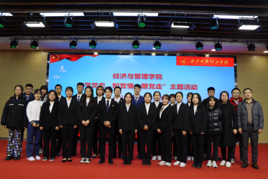 为深入推进党史学习教育和党的十九届六中全会精神学习,12月8日晚,经济与管理学院在建德楼203成功举办“学党史、知党情、跟党走”党史知识竞赛决赛。经济与管理学院党委书记何文举,副书记冯纪潮,信息工程学院王兴鹏,语言文化传播学院张兴,高等职业技术学院郭学鹏、张艺园,经济与管理学院学生党支部书记、辅导员、学生党员、发展对象和入党积极分子出席和参加了活动。