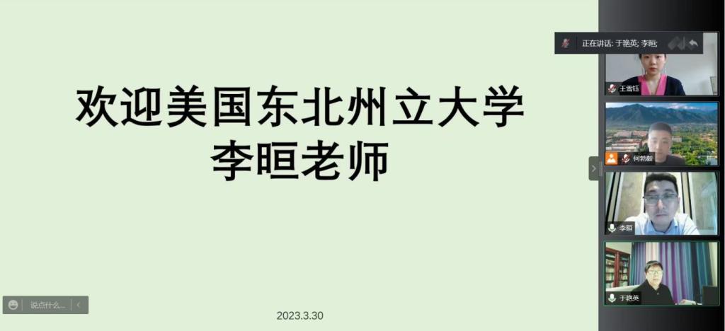 3月30日下午,ac米兰与美国东北州立大学举行线上合作洽谈会。美方亚洲区主任李晅以及我方国际教育学院院长助理何勃毅、外事办公室王雪钰等相关负责人参加会议。
