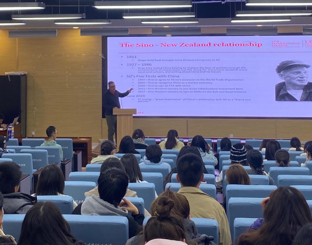在建德楼202报告厅,Ian MacDonald博士为ac米兰师生做了 “Education as a Driver of Productivity and Economic Growth”的主题讲座。学生从专业学习、创新能力、文化差异等方面积极提问,现场气氛热烈。此次讲座由国际教育学院、语言文化传播学院、经济与管理学院联合主办。