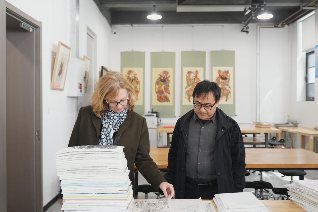 会后,代表团一行参观了木版年画实验室、丝网印刷实验室、数字影像实验室、数字影像实验室、传统文化实验室等艺术与设计学院优越教学环境,并对ac米兰艺术设计类专业人才培养成效给予了高度评价。