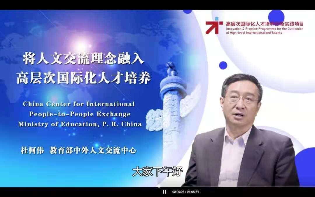 为贯彻落实《关于加强和改进中外人文交流工作的若干意见》《教育部等八部门关于加快和扩大新时代教育对外开放的意见》等文件精神和全国教育大会、全国教育外事工作会议等会议精神,进一步提升将人文交流理念和全球胜任力培养融入高层次国际化人才培养工作的教师教育教学能力,加快培育具有全球视野的高层次国际化人才,推动做好“高层次国际化人才培养创新实践项目”实施工作,教育部中外人文交流中心于2021年1月18日-1月22日组织开展高层次国际化人才培养创新实践项目首期教师发展培训(以下简称“教师发展培训”)。