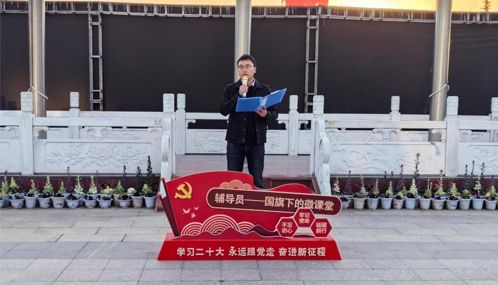 升国旗仪式结束后,国际教育学院赵效鹏老师进行了国旗下微课堂演讲。他讲到学风建设是大学精神的命脉。从汉代太学的琅琅书声到宋代书院的学术争鸣,从西南联大的战火求学到今日明德校园的晨读剪影,学风始终是教育最深沉的力量。唯有保持求知若渴的学风,才能突破自我边界。他向同学们提出三个“担当”。一是求知担当:以真理为灯,照亮前行之路。积极参与社会调研、社区科普服务,让知识走出课堂,在实践中检验真知;二是责任担当:以家国为怀,托举时代使命。作为明德学子,我们应以奋斗者为榜样,在课堂研讨中关注社会议题,在社团活动中践行公益,让担当精神成为青春最亮丽的名片;三是创新担当:以实践为刃,开拓未来疆土。明德的创新工坊、创业大赛、学术论坛,正是磨砺创新能力的舞台。要让传统智慧在现代土壤中绽放新彩,如敦煌壁画般历久弥新。
