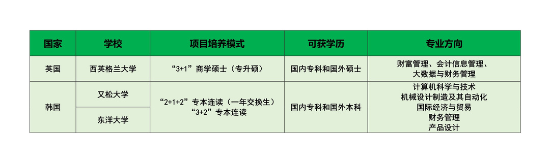 ※若未达到对方大学入学要求,可通过语言班进行语言强化,语言课程毕业且达到要求后即可进入对方大学本科/硕士专业课程。